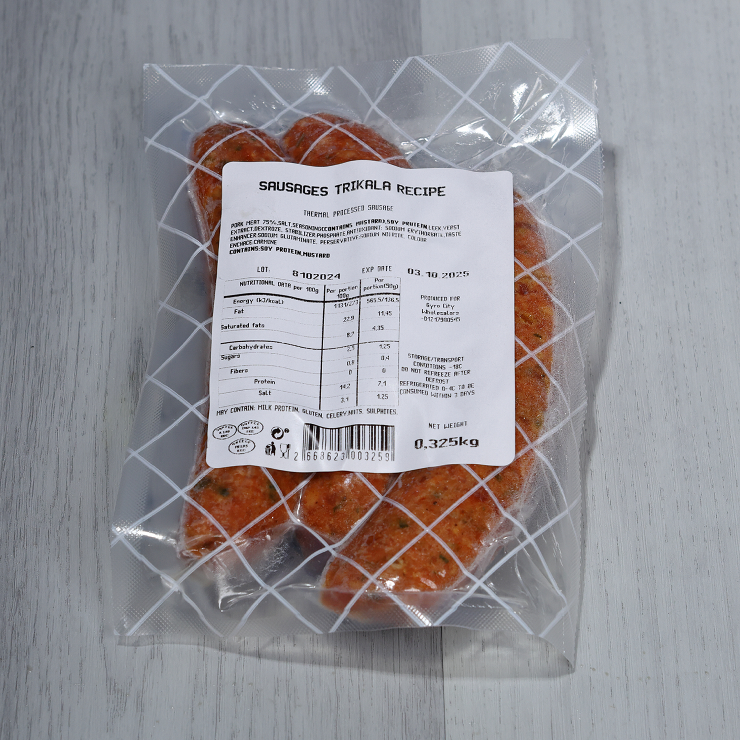 Experience the authentic taste of Greece with our Trikalon Sausage with Leek, available in a convenient 7.6kg box. Made using traditional Greek recipes and high-quality ingredients, these flavorful sausages combine savory pork with the delicate taste of leek, perfect for enhancing any menu. A top choice for businesses seeking premium Greek sausages from a reliable wholesale supplier."